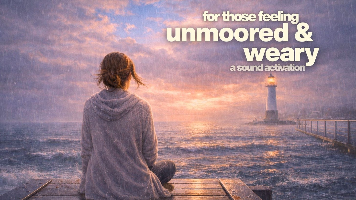To the ones exhausted from uncertainty, craving steadiness, not in theory, but in their body, their breath, their bones. To those who’ve been weathering the storm and are ready to feel the ground hold them again. We send our light to the seekers of peace - not escape, but presence.