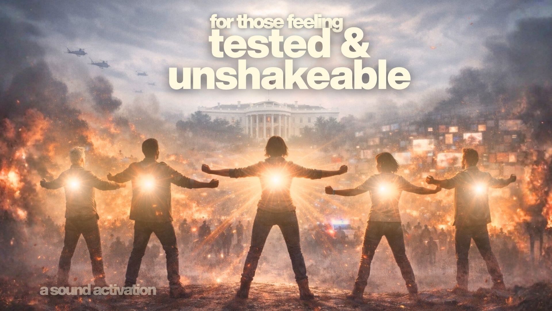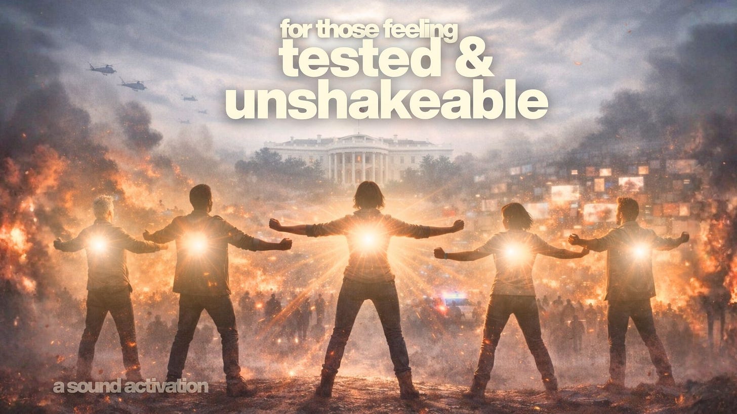 Through the combination of words (language of the mind) and music (language of the soul), today’s sound activation provides the space to walk through the fire, without becoming it. Others may spiral, you stand.